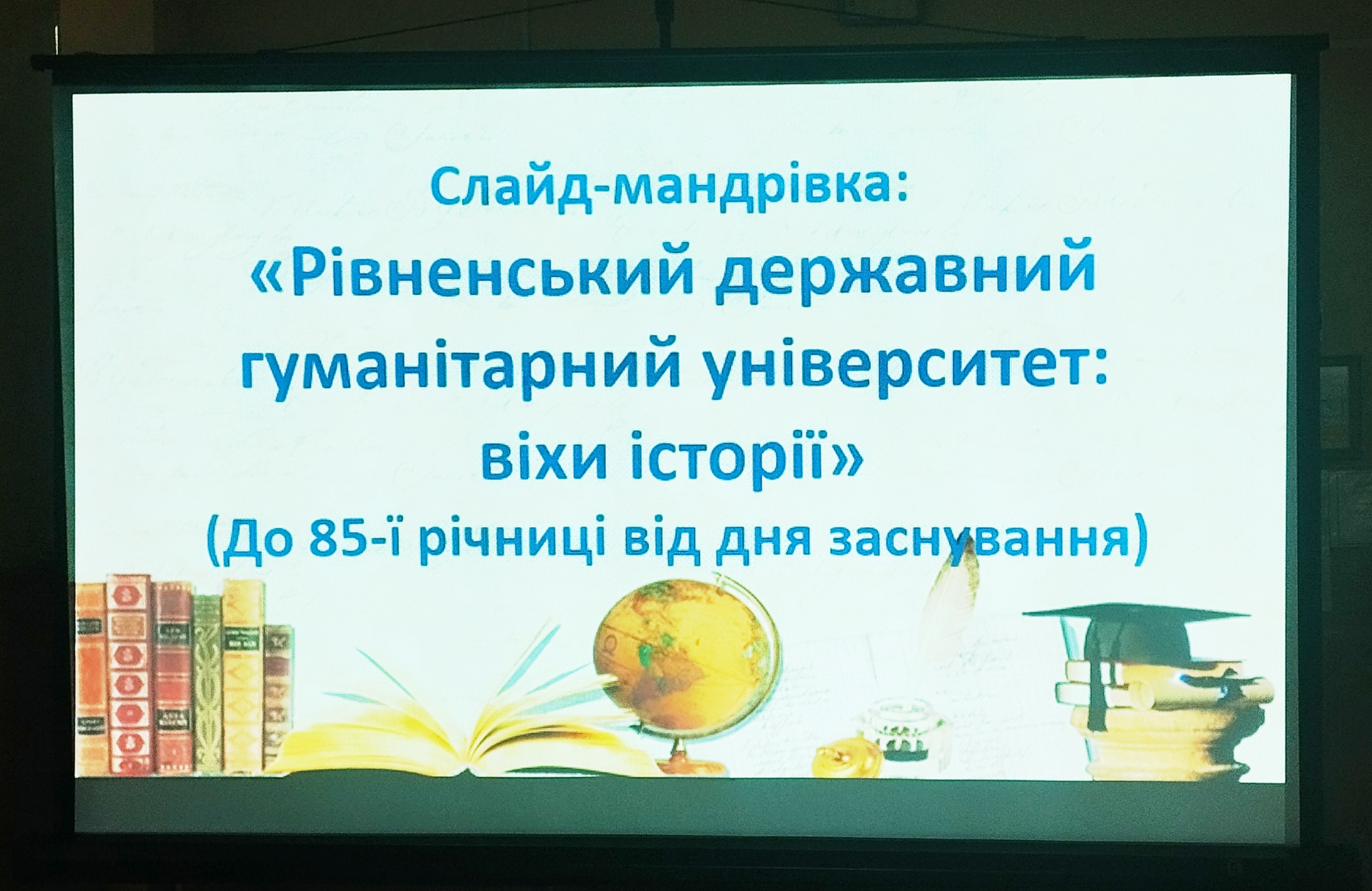 Час невпинно біжить, залишаючи прекрасні спогади, а пам’ять береже найдорожче. Пролетіли студентські роки та життя в праці не одного покоління випускників, викладачів, співробітників університету. За 85-річний історичний розвиток освітнього закладу його науково-педагогічні працівники стали авторами багатьох видань про історію університету, факультетів, кафедр тощо. Ці видання бібліотека представила в експозиції виставки «Рівненський державний гуманітарний університет: віхи історії».